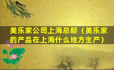 美乐家公司上海总部(美乐家的产品在上海什么地方生产)