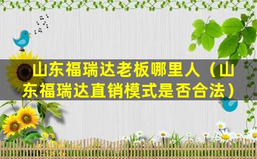 山东福瑞达老板哪里人(山东福瑞达直销模式是否合法)