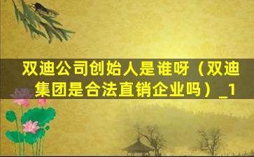 双迪公司创始人是谁呀(双迪集团是合法直销企业吗)