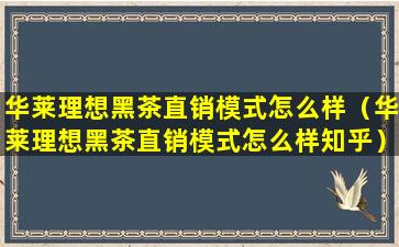 华莱理想黑茶直销模式怎么样(华莱理想黑茶直销模式怎么样知乎)