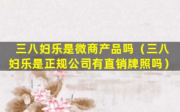 三八妇乐是微商产品吗(三八妇乐是正规公司有直销牌照吗)