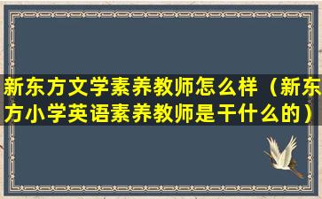 新东方文学素养教师怎么样(新东方小学英语素养教师是干什么的)