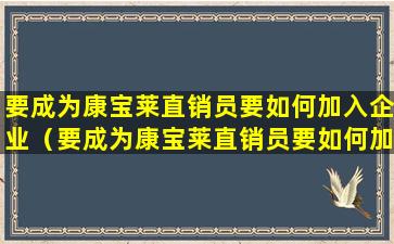 要成为康宝莱直销员要如何加入企业(要成为康宝莱直销员要如何加入企业微信群)