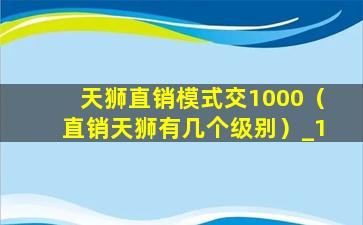 天狮直销模式“交1000”是一种常见的营销策略,涉及一次性支付 1000 元费用以加入天狮直销团队。