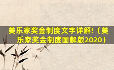 美乐家奖金制度文字详解!(美乐家奖金制度图解版2020)