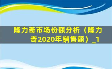 隆力奇市场份额分析(隆力奇2020年销售额)