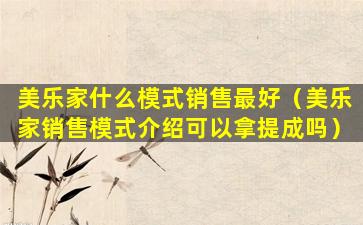 美乐家什么模式销售最好(美乐家销售模式介绍可以拿提成吗)