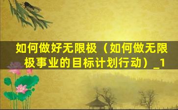 如何做好无限极(如何做无限极事业的目标计划行动)