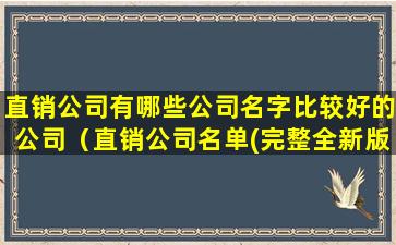 直销公司有哪些公司名字比较好的公司(直销公司名单(完整全新版))