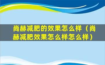 尚赫减肥的效果怎么样(尚赫减肥效果怎么样怎么样)