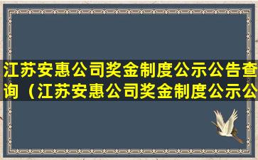江苏安惠公司奖金制度公示公告查询(江苏安惠公司奖金制度公示公告查询官网)
