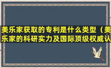 美乐家获取的专利是什么类型(美乐家的科研实力及国际顶级权威认证)
