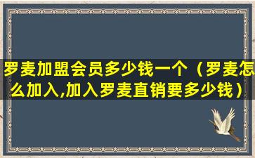 罗麦加盟会员多少钱一个(罗麦怎么加入,加入罗麦直销要多少钱)