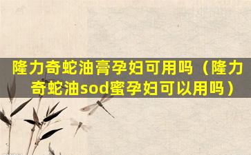隆力奇蛇油膏孕妇可用吗(隆力奇蛇油sod蜜孕妇可以用吗)