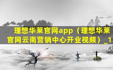 理想华莱官网app(理想华莱官网云南营销中心开业视频)