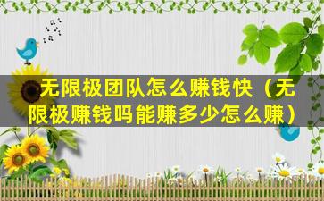 无限极团队怎么赚钱快(无限极赚钱吗能赚多少怎么赚)