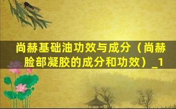 尚赫基础油功效与成分(尚赫脸部凝胶的成分和功效)