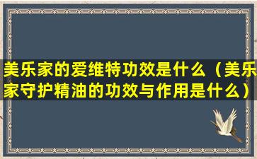 美乐家的爱维特功效是什么(美乐家守护精油的功效与作用是什么)