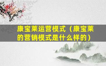 康宝莱运营模式(康宝莱的营销模式是什么样的)