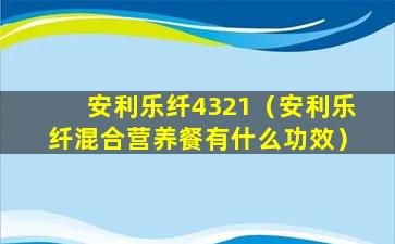 安利乐纤4321(安利乐纤混合营养餐有什么功效)