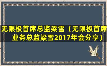 无限极首席总监梁雪(无限极首席业务总监梁雪2017年会分享)