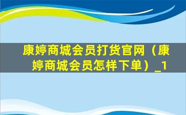 康婷商城会员打货官网(康婷商城会员怎样下单)