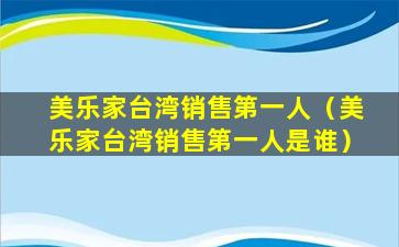 美乐家台湾销售第一人(美乐家台湾销售第一人是谁)