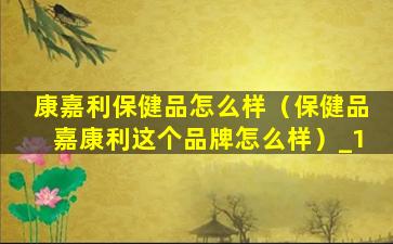 康嘉利保健品怎么样(保健品嘉康利这个品牌怎么样)