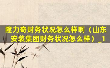 隆力奇财务状况怎么样啊(山东安装集团财务状况怎么样)