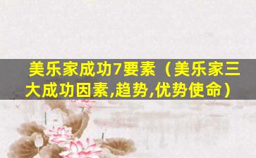 美乐家成功7要素(美乐家三大成功因素,趋势,优势使命)