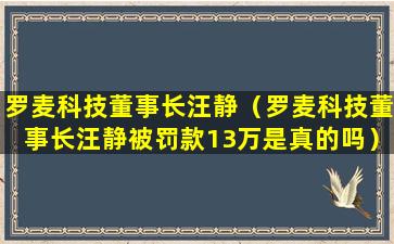 罗麦科技董事长汪静(罗麦科技董事长汪静被罚款13万是真的吗)