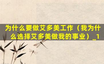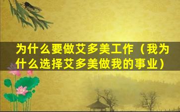 为什么要做艾多美工作(我为什么选择艾多美做我的事业)