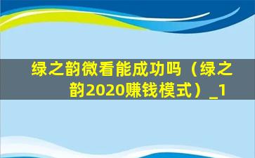 绿之韵微看能成功吗(绿之韵2020赚钱模式)