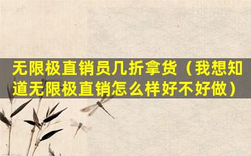 无限极直销员几折拿货(我想知道无限极直销怎么样 好不好做)