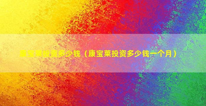 康宝莱投资多少钱(康宝莱投资多少钱一个月)