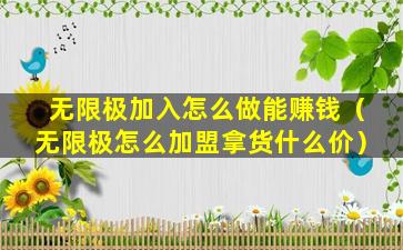 无限极加入怎么做能赚钱(无限极怎么加盟拿货什么价)