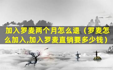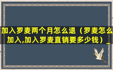 加入罗麦两个月怎么退(罗麦怎么加入,加入罗麦直销要多少钱)