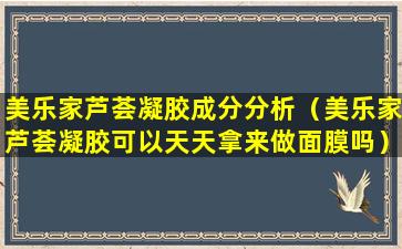 美乐家芦荟凝胶成分分析(美乐家芦荟凝胶可以天天拿来做面膜吗)