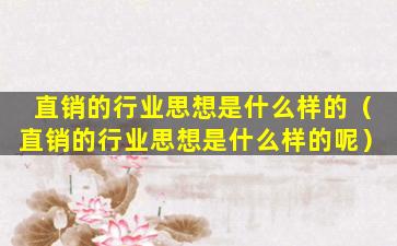 直销的行业思想是什么样的(直销的行业思想是什么样的呢)