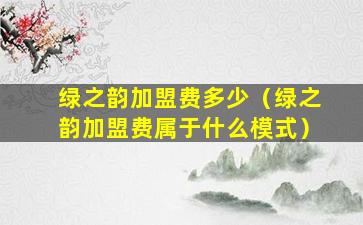 绿之韵加盟费多少(绿之韵加盟费属于什么模式)