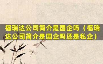 福瑞达公司简介是国企吗(福瑞达公司简介是国企吗还是私企)