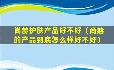 尚赫护肤产品好不好(尚赫的产品到底怎么样好不好)