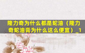 隆力奇为什么都是蛇油(隆力奇蛇油膏为什么这么便宜)