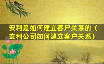 安利是如何建立客户关系的(安利公司如何建立客户关系)