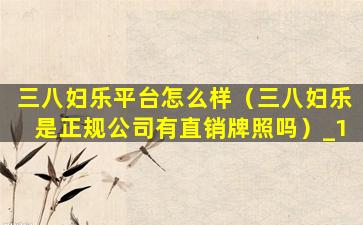 三八妇乐平台怎么样(三八妇乐是正规公司有直销牌照吗)