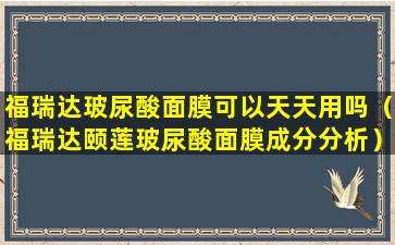 福瑞达玻尿酸面膜可以天天用吗(福瑞达颐莲玻尿酸面膜成分分析)