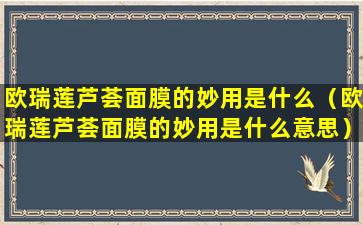 欧瑞莲芦荟面膜的妙用是什么(欧瑞莲芦荟面膜的妙用是什么意思)