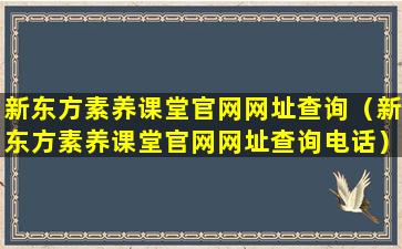 新东方素养课堂官网网址查询(新东方素养课堂官网网址查询电话)