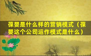 葆婴是什么样的营销模式(葆婴这个公司运作模式是什么)