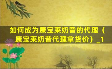 如何成为康宝莱奶昔的代理(康宝莱奶昔代理拿货价)